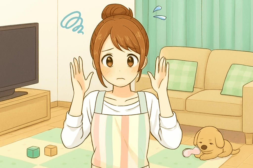 狭いリビングでは、おもちゃやペット用品が床に散乱すると、さらに窮屈に感じられます。