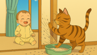 猫のトイレ砂飛び散り防止術|赤ちゃんの衛生環境を守る工夫